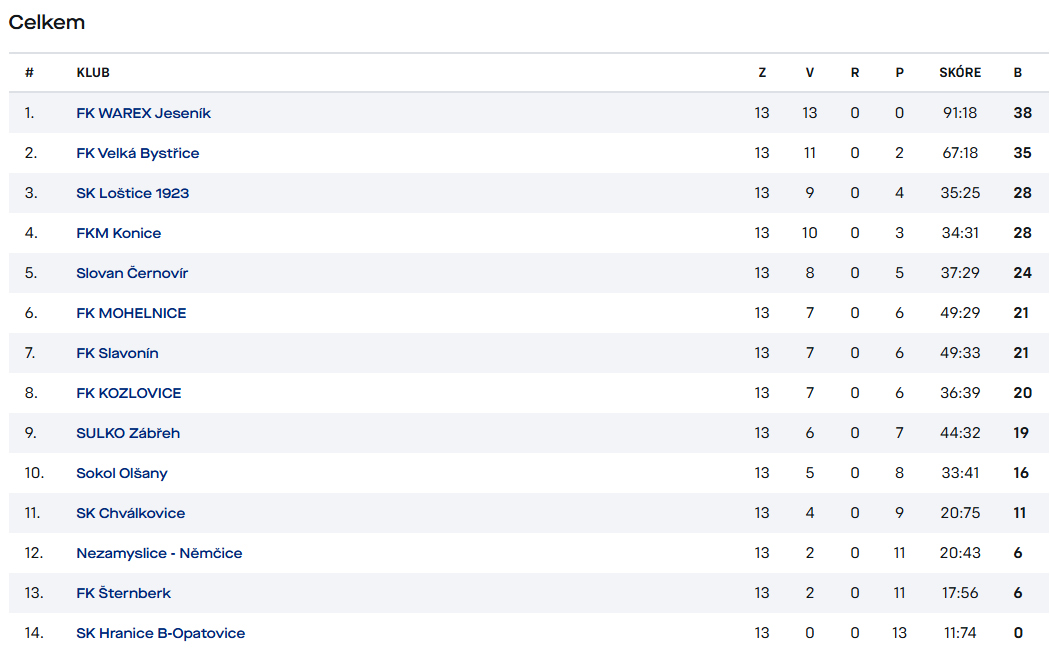 Tabulka po podzimní části